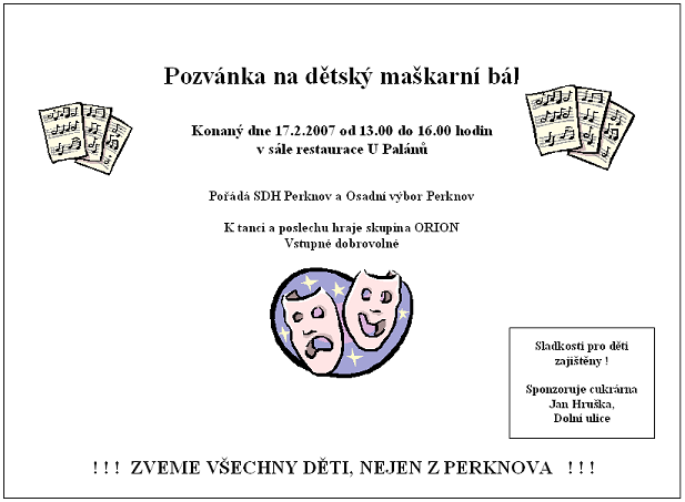 se koná dne 17.2.2007 od 13.00 do 16.00 hodin v sále restaurace U Palánů